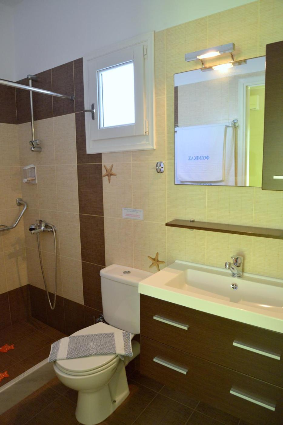 Fitted with wrought-iron beds and bright colours,air-conditioned studios at the Finikas provide a TV and hairdryer. There is a full kitchen with a refrigerator and an electric kettle. A safety deposit box and a toaster are included. Most units have Aegean Sea views.