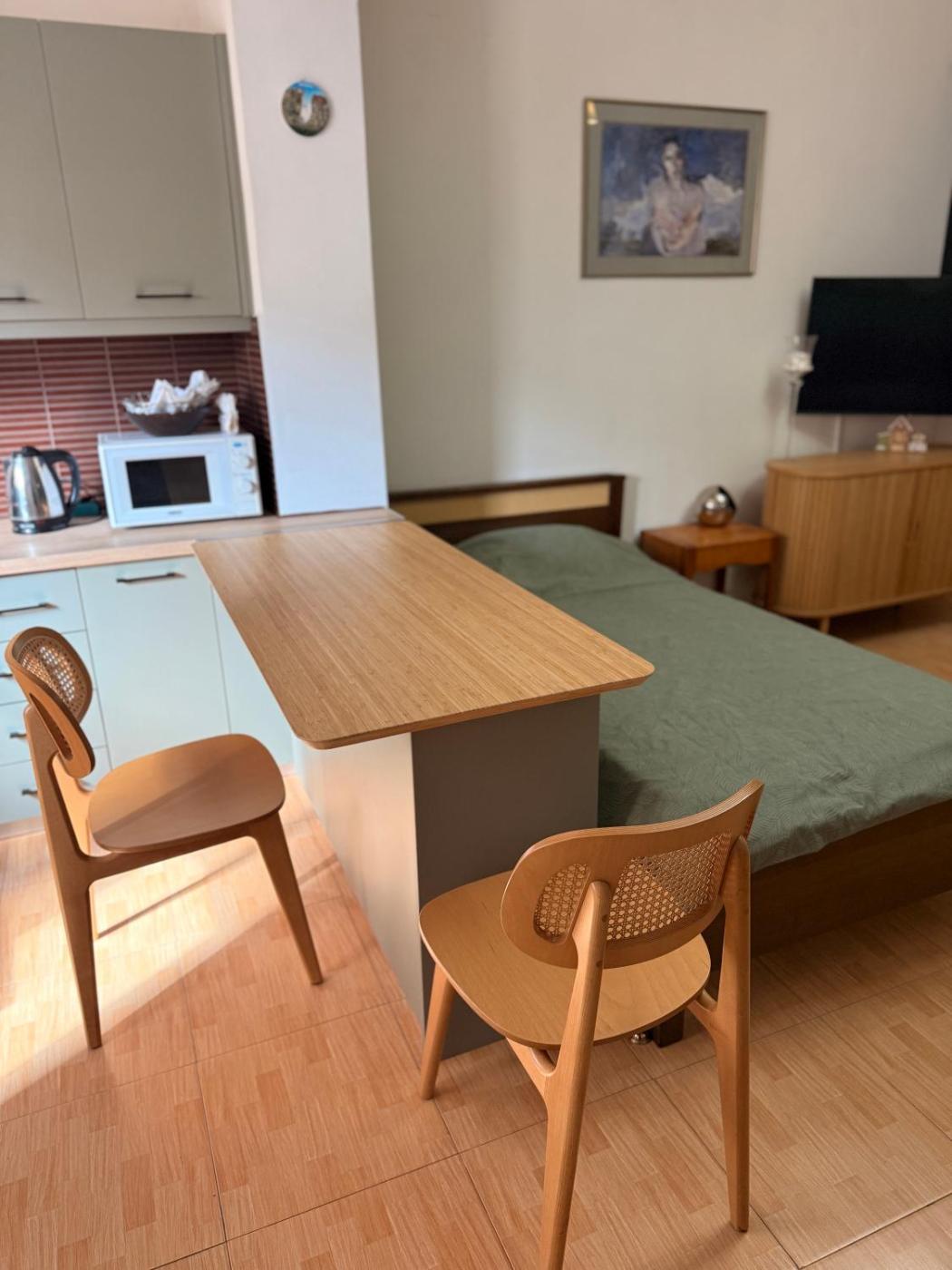 One-Bedroom Apartment. Boasting a private entrance, this air-conditioned apartment features a kitchen, 1 bedroom and 1 bathroom with a bath and a hairdryer. Guests can make meals in the kitchen that has a stovetop, a refrigerator, kitchenware and an oven. Featuring a balcony, this apartment also features a washing machine, soundproof walls and a flat-screen TV. The unit has 2 beds.