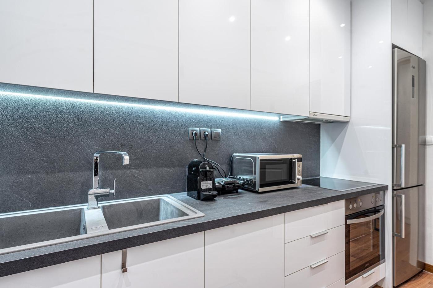 Two-Bedroom Apartment. This spacious apartment is comprised of a kitchen, a seating area, 2 separate bedrooms and 2 bathrooms with a shower and a hairdryer. In the well-fitted kitchen, guests will find a stovetop, a refrigerator, kitchenware and an oven. The air-conditioned apartment offers a flat-screen TV with streaming services, a washing machine, soundproof walls, a tea and coffee maker as well as city views. The unit offers 3 beds.