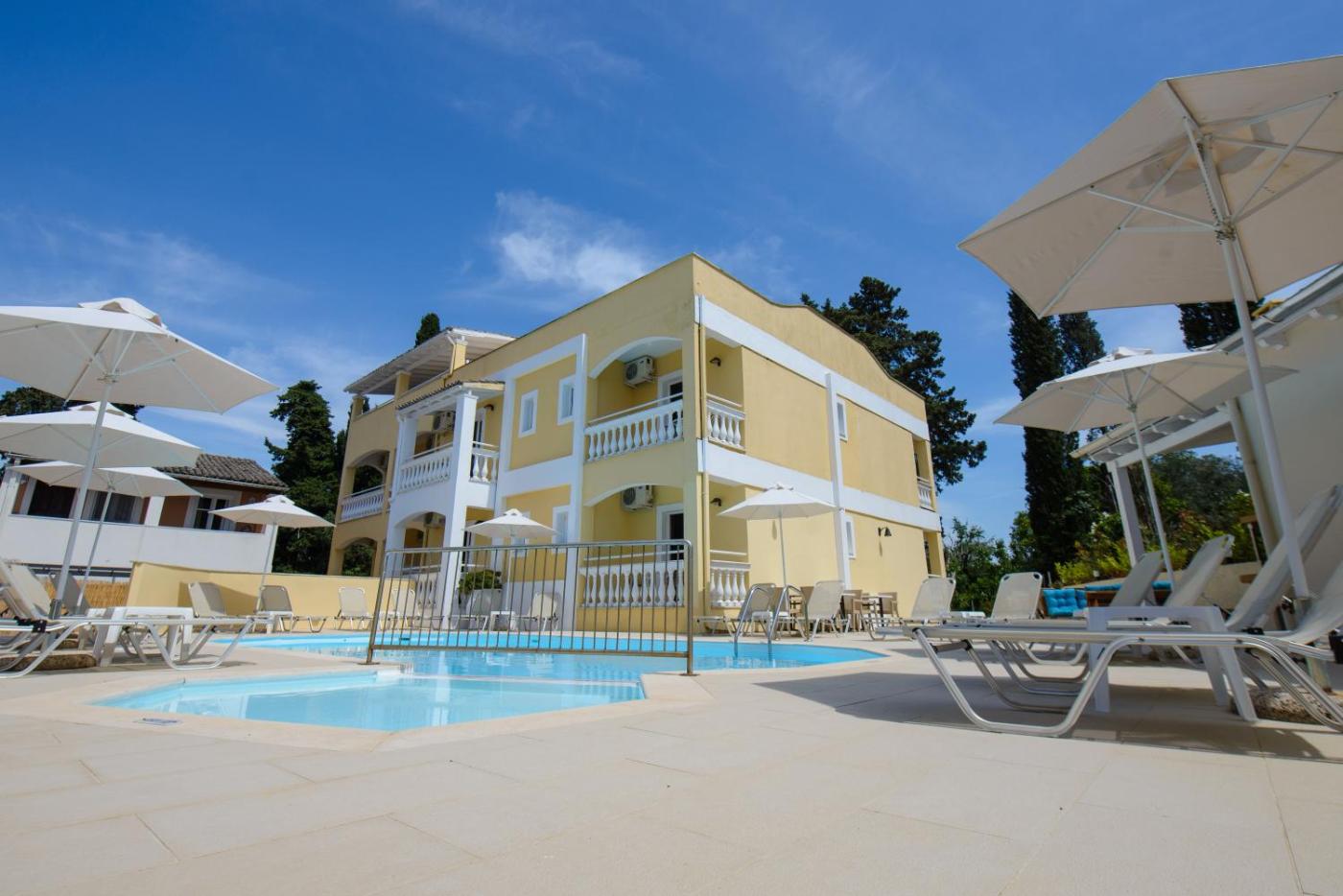 Saint Spiridon Hotel is a recently renovated aparthotel in Kassiopi,guests can makes the most of its outdoor swimming pool, garden and bar. Featuring sea and mountain views, this aparthotel also provides guests with free WiFi. This 3-star aparthotel offers private entrance.