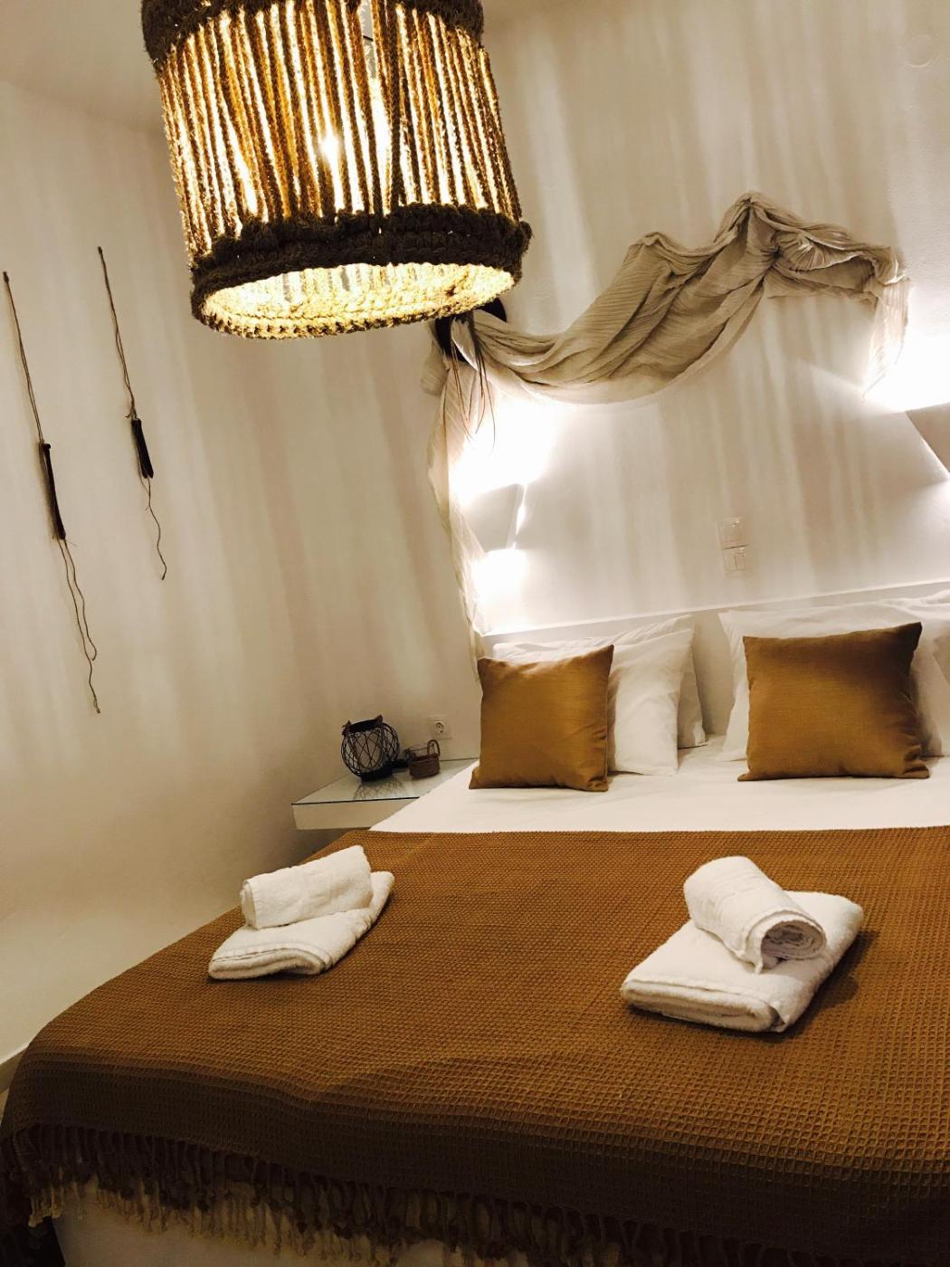 Double Room with Sea View. Featuring panoramic Aegean Sea and mountain views from its furnished balcony, this air-conditioned room is fitted with an iron antique bed. It offers a mini fridge, a TV and free Wi-Fi. Coffee, sugar and water are available. ;