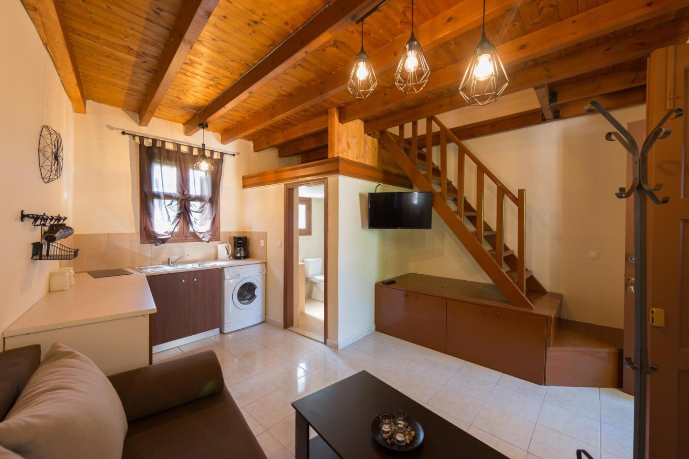 Maisonette No.1. Featuring a private entrance, this air-conditioned apartment consists of 1 living room, 1 separate bedroom and 1 bathroom with a shower and a hairdryer. Meals can be prepared in the kitchen, which is equipped with a stovetop, a refrigerator, kitchenware and a tea and coffee maker. Boasting a terrace, this apartment also provides a washing machine, soundproof walls and a flat-screen TV with cable channels. The unit offers 2 beds. ;