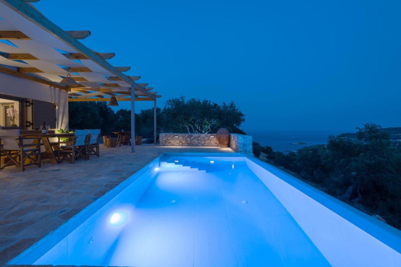Featuring air-conditioned accommodation with a balcony, Villa Seva Sea View - Perfect for Romantic Getaways with Pool and Sunrise & Sea Views By Villa Mana Gers is located in Skinária. This villa features a private pool, a garden, barbecue facilities, free WiFi and free private parking. The accommodation provides airport transfers, while a bicycle rental service is also available.